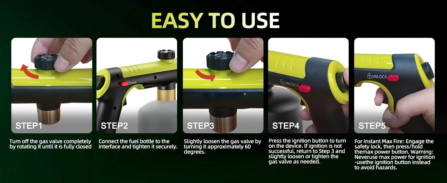 Instantly unleash maximum heat with a single push. No waiting—just intense power for searing meat, lighting charcoal, or clearing snow in seconds.