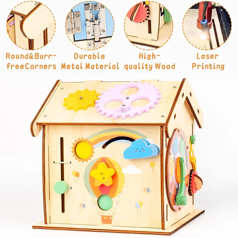 An All-in-One Educational Tool: Whether it’s boosting life skills or improving fine motor control, this busy house supports multiple aspects of child development in one engaging toy.