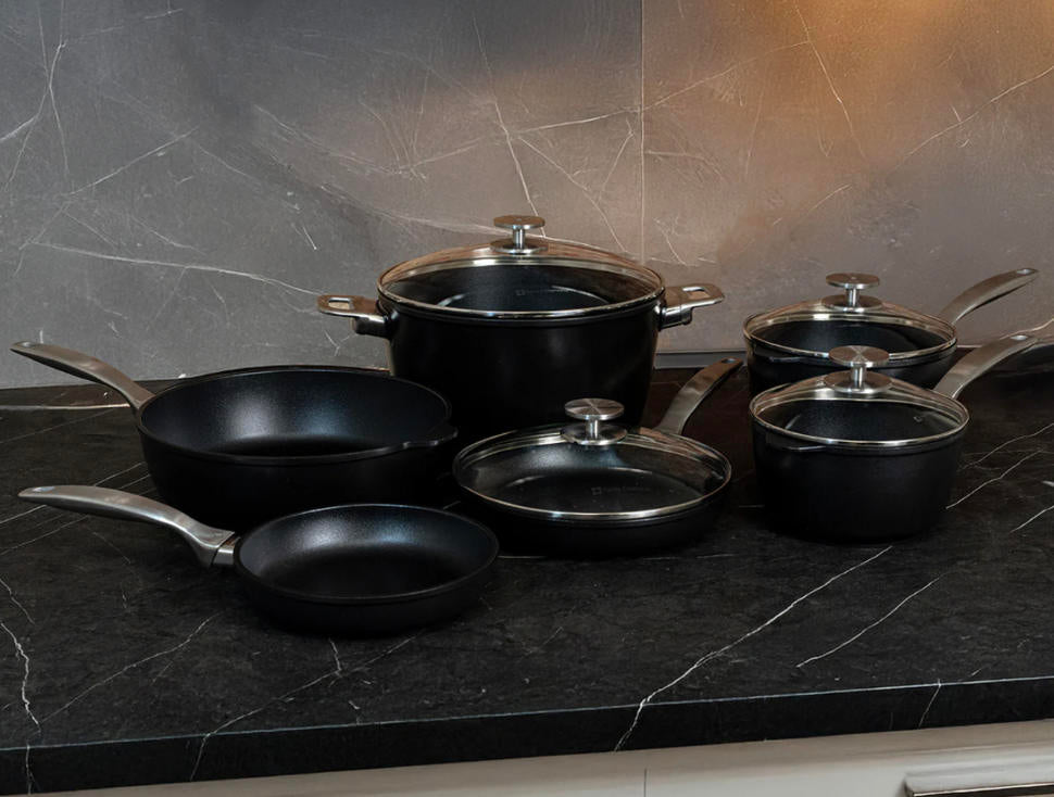 Safe for all stovetops—including induction—and oven safe up to 500°F (260°C), the CXD set delivers unmatched versatility. Swiss Diamond's eco-friendly production uses hydroelectric power, combining sustainability with premium European craftsmanship.