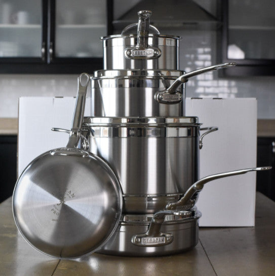 For superior form and function from optimized cold forged construction, equip the kitchen with a Hestan ProBond Forged Stainless Steel 10 pc Set. Our best-selling set includes a curated assortment of the most often used pieces. This ultimate set will help to achieve best results with exceptional performance and precision for every sauce, stew, fricassee and filet. Lids are interchangeable and will fit the skillets.