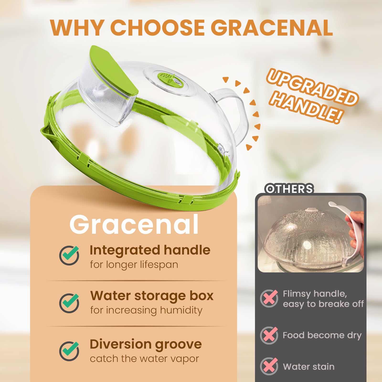 🖐️ Ergonomic Integrated Handle: The upgraded tall dome design avoids touching your food (goodbye, messy cling film!), while the sturdy, heat-resistant handle makes it easy to lift in and out of the microwave without burning your fingers.